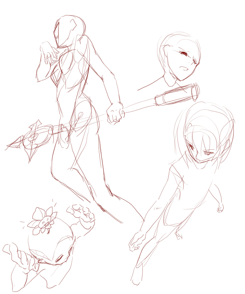 今度の奴は背骨で頭身測ってます。 いままではだいたいでやってましたw; 胴が描き終わったら腕と足は違和感を感じないところに間接の位置を〇で決めて、それを線で繋いでいく感じです。 将来的にはアタリとらなくてもイメージをそのまま描き起こせるようになりたいんですが、経験値が少なすぎてとてもじゃないけど無理です^^;