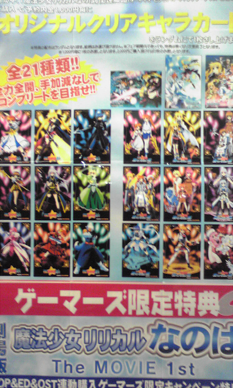 ゲーマーズなんば店は宇宙一リリカルなのはを応援しています。」の文字がw 写メとろうかなと思ったんだけどまだ作業中だったので諦めました^^;
