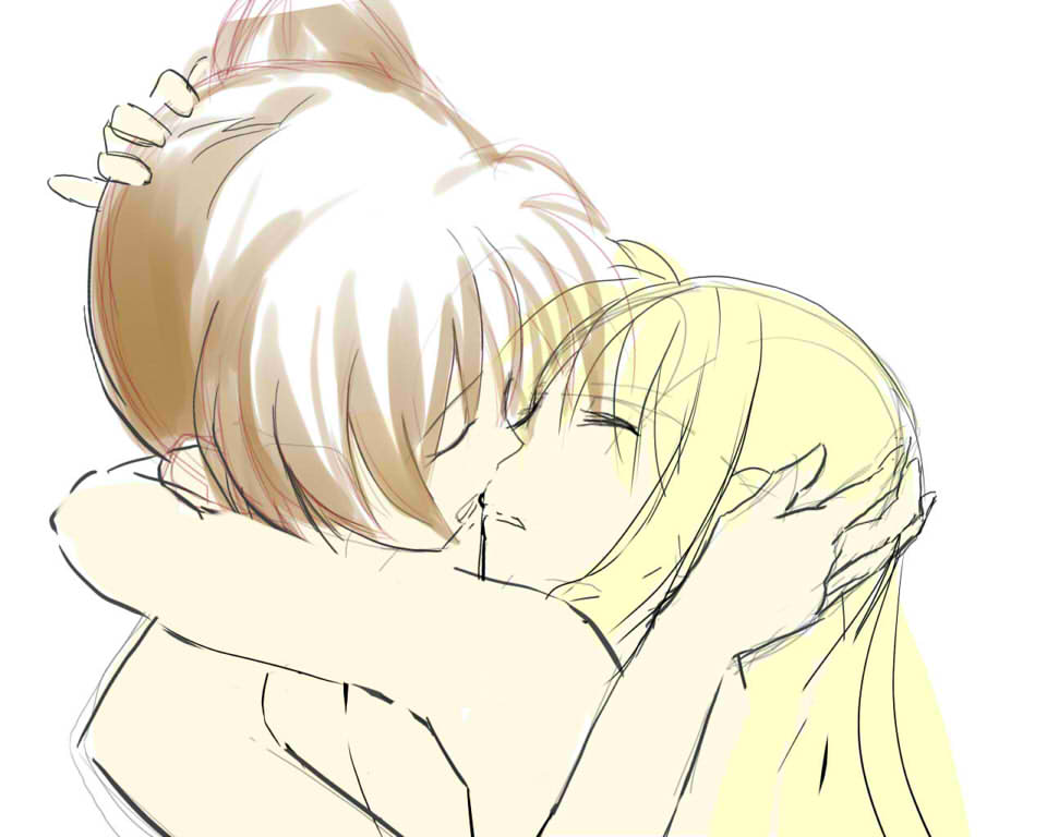 大きな絵、かつ二人のキャラを絡ませるのはとても難しいですね。一人のキャラを描き込むよりよっぽど難しい・・・w 違和感ありまくりなんでちょっとづつ修正していきたいと思います。
