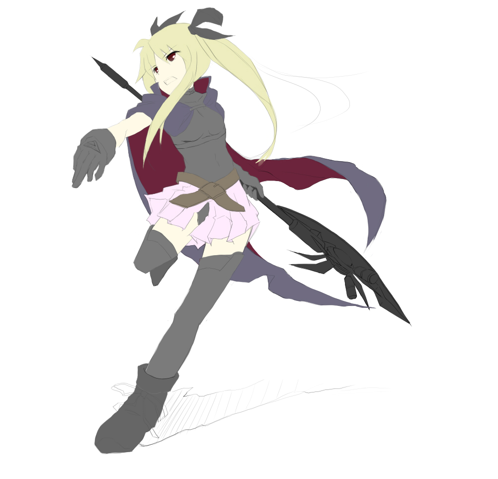 という事はさて置き、フェイトちゃんの下地を置いてみました。だいたい、下地をおかないで、いきなりがっつり塗る事が多いんですが、筆ツールでそれをやると背景を置いた時に体が透けて背景が見えてしまうんで、今回はそれを考慮してます。