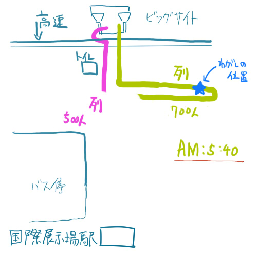 そんなこんなで、現地についたらすでに凄い列が・・・! 目測にすぎませんが、既に前に500人くらいならんでました。