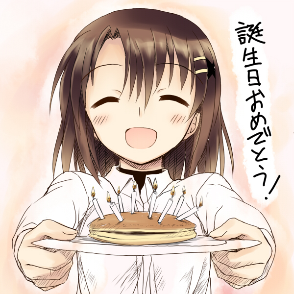 司令!!笑顔がまぶしすぎます!!まぶしすぎますけどなんかケーキのようなものがおかしいです!ローソクも本来立つべき場所じゃない場所に立ってるので若干困惑してるように見えます!!